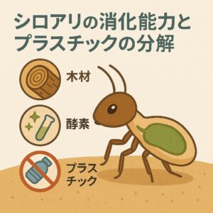 この記事では、シロアリのプラスチック分解を「かじる(物理)」と「分解(生物)」に分けて整理しつつ、生分解性プラスチックとの違いも含めて、あなたが安心して判断できるようにまとめます。