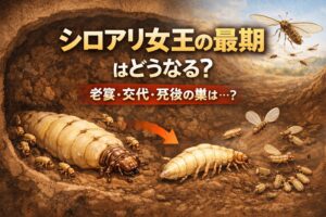 ここでは、シロアリ女王の最期について、よく検索される疑問を一気に整理します。「どう死ぬのか」「悲惨なのか」「巣は終わるのか」。結論から言うと、最期そのものより、交代が起きるかどうかが最大のポイントです。
