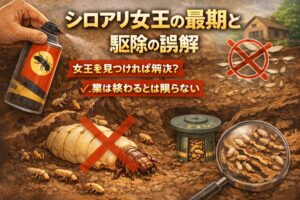 この記事では、シロアリ女王の最期を感情論や刺激的な話ではなく、仕組みとして整理します。羽アリ、寿命、交代、駆除までつなげて理解できるようにまとめるので、ここ、気になりますよね?という部分を一つずつ解消していきます。