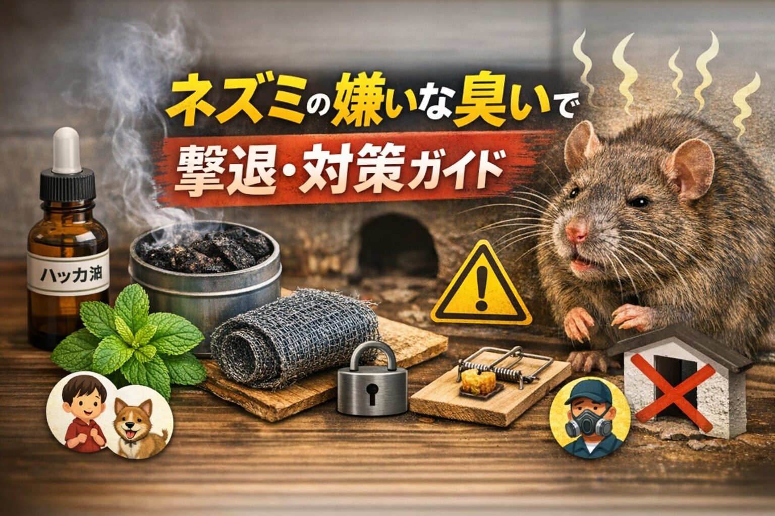 ネズミが嫌いな臭いは補助的な手段です。侵入口封鎖と餌管理がなければ、再発しやすいのが現実です。